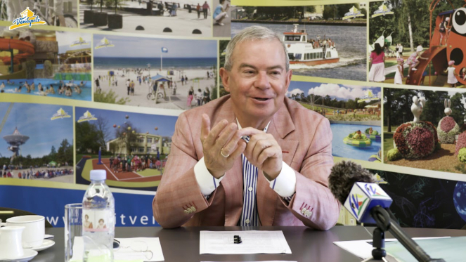 Председатель Вентспилсской городской думы Айварс Лембергс дает видеоответы на вопросы жителей. Фото с портала ventspils.lv